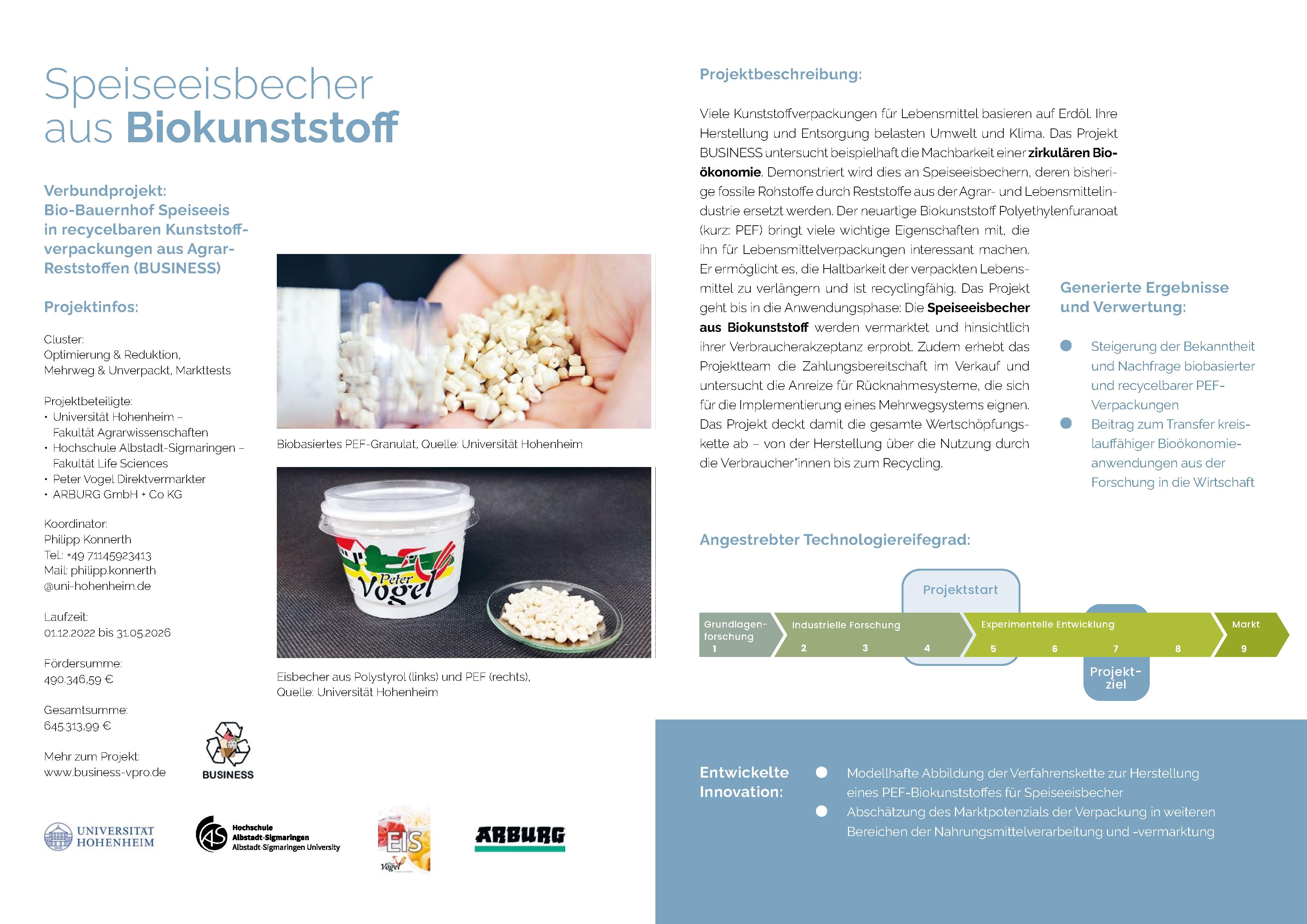 Bio-Bauernhof Speise-Eis in recycelbaren Kunststoffverpackungen aus Agrar-Reststoffen
